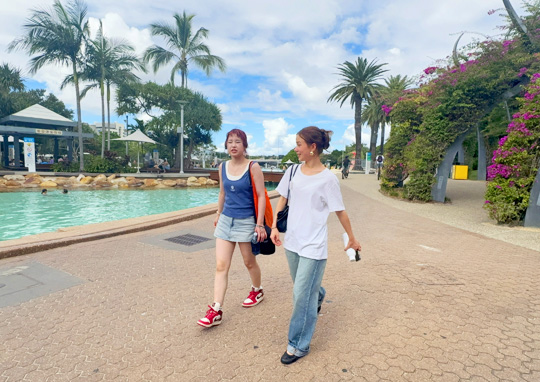 ブリスベン到着後は、展望台やショッピングモール、ビーチ散策などを通して、オーストラリアの空気を感じる時間を過ごしました。